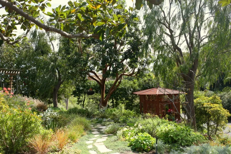 For wildlife, this grevillea is the mainstay of the garden, whatever its awkward shape. With the aloes covering about two months of blooms, December and January, the kangaroo paws now taking up the baton and fattening up long-lasting flower spikes for early spring, I feel the garden is in good hands whether I’m home or away. Did I choose these plants for their wildlife benefits? Honestly, no. I chose them for their beauty and low-water use. As the garden continues its self-editing process while I’m away half the year, I never know what to expect. Many other plants I chose were either too rampant (passiflora) or unsuitable for a summer-dry garden (melianthus). I’ve got a makeshift roster of friends and neighbors who help to water containers (so they say!), but the garden itself gets no deep watering for the months I’m away.